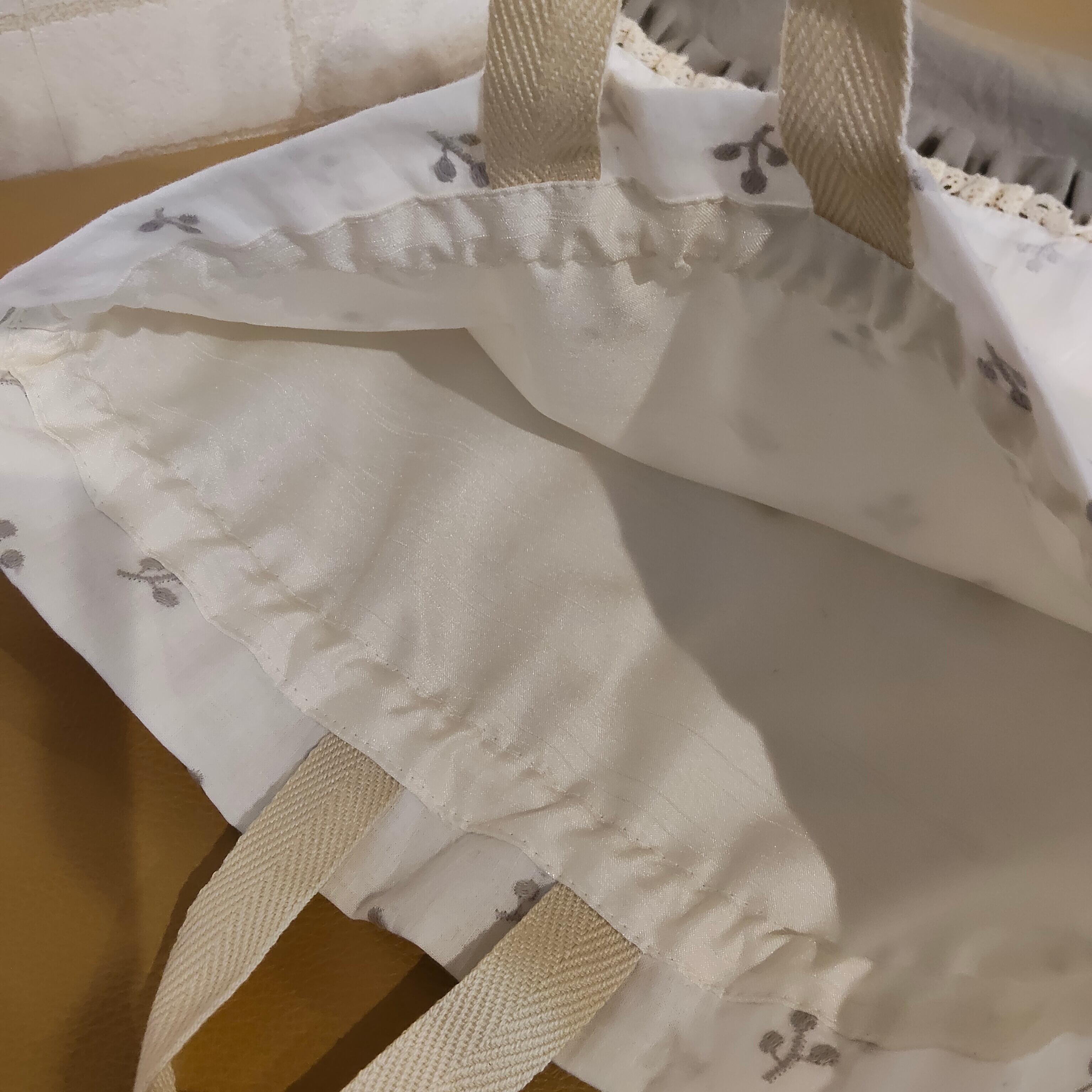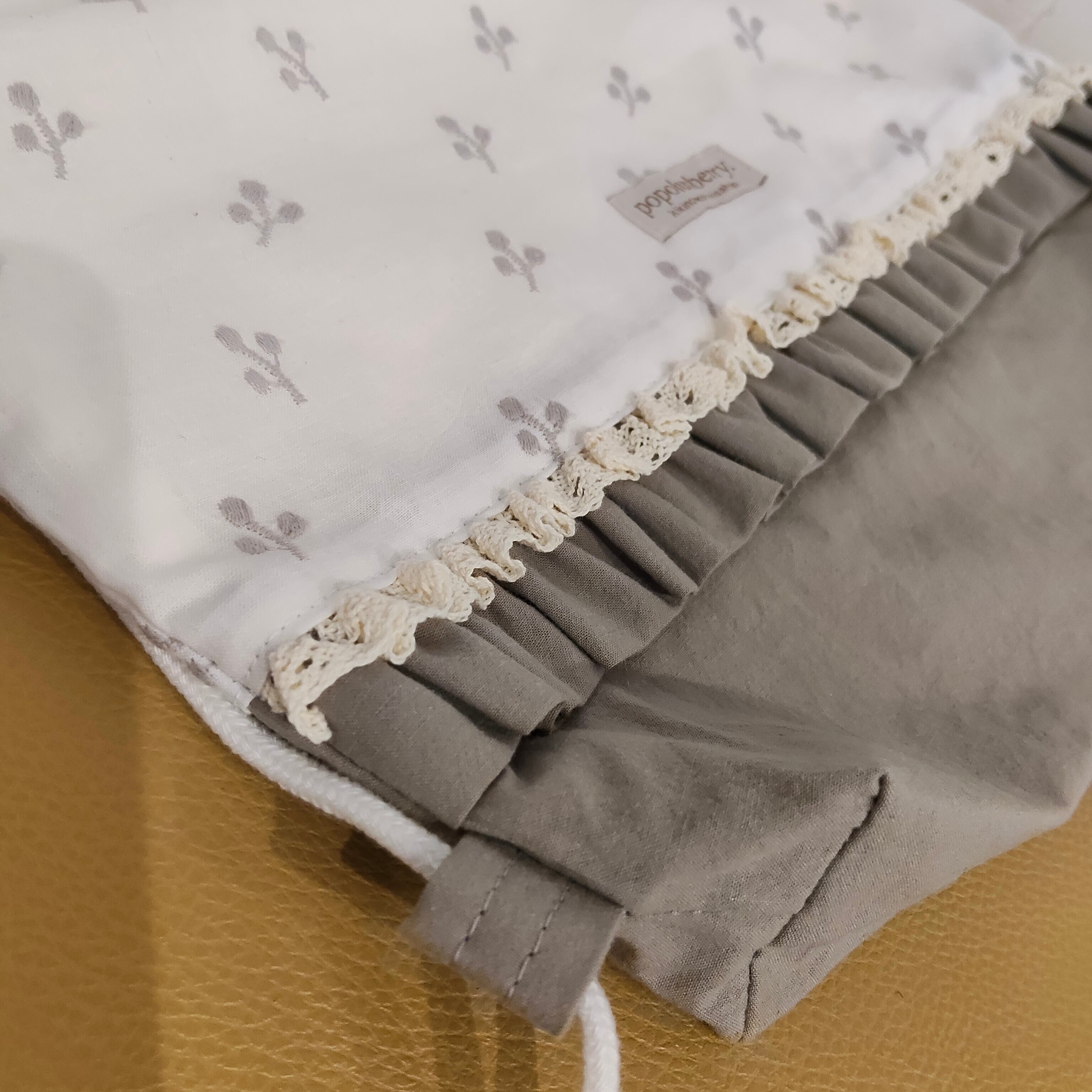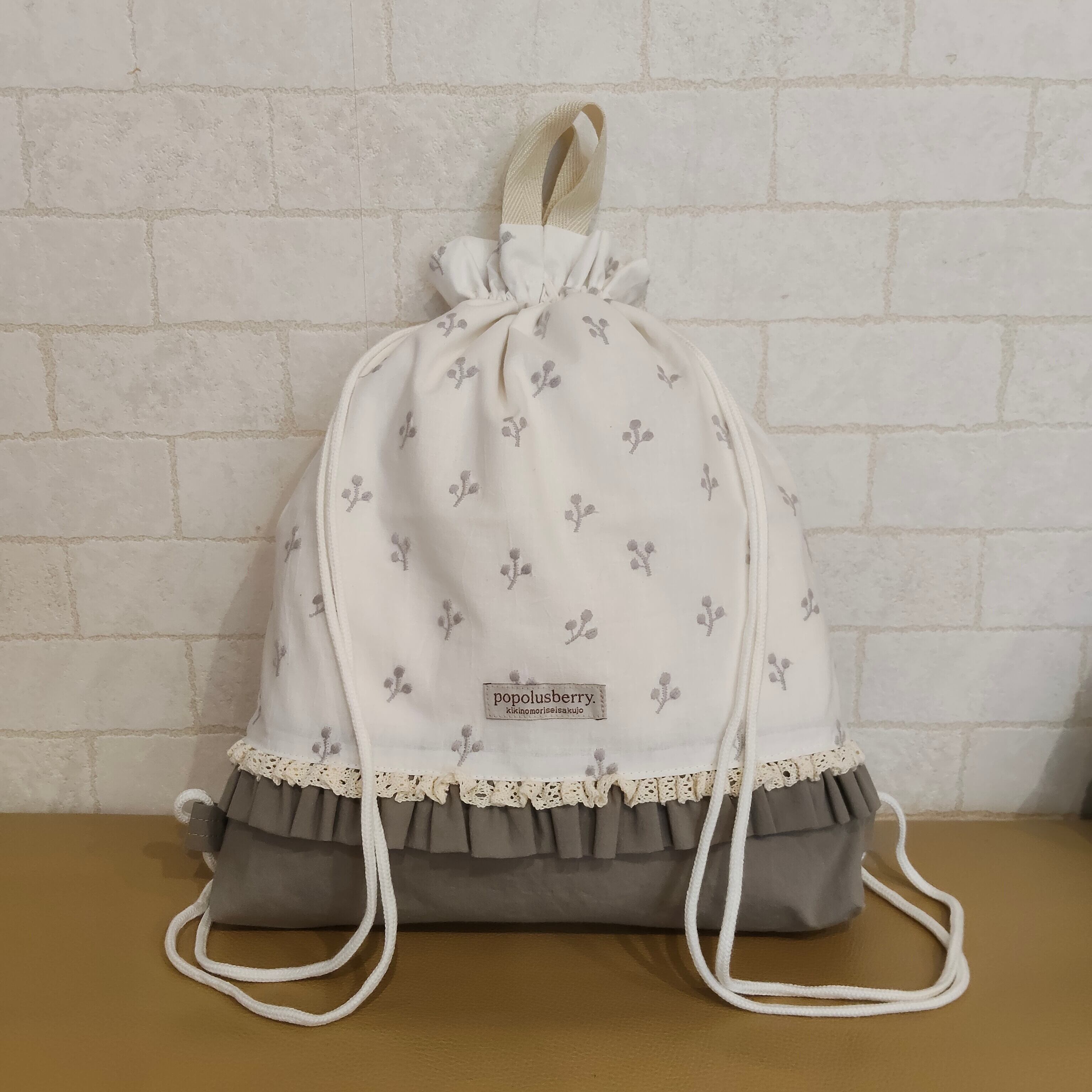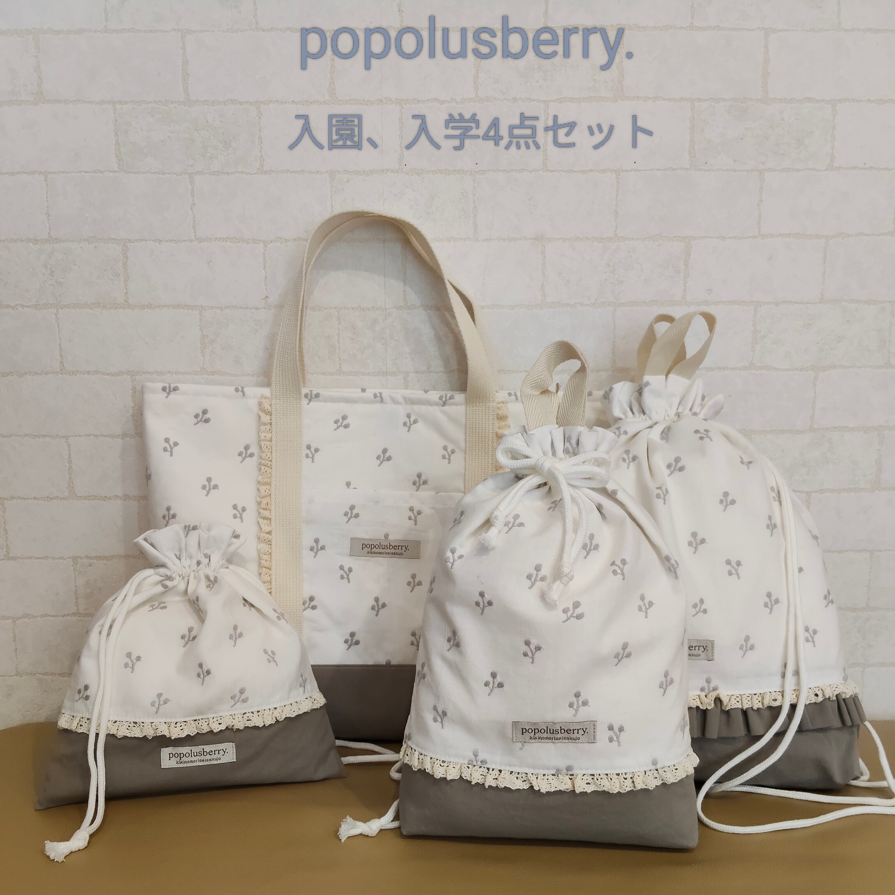 フリルにレースを重ねて、ちょっぴり特別感をプラス* ひとつひとつ丁寧に仕上げた、世界にひとつだけの入園セットです。